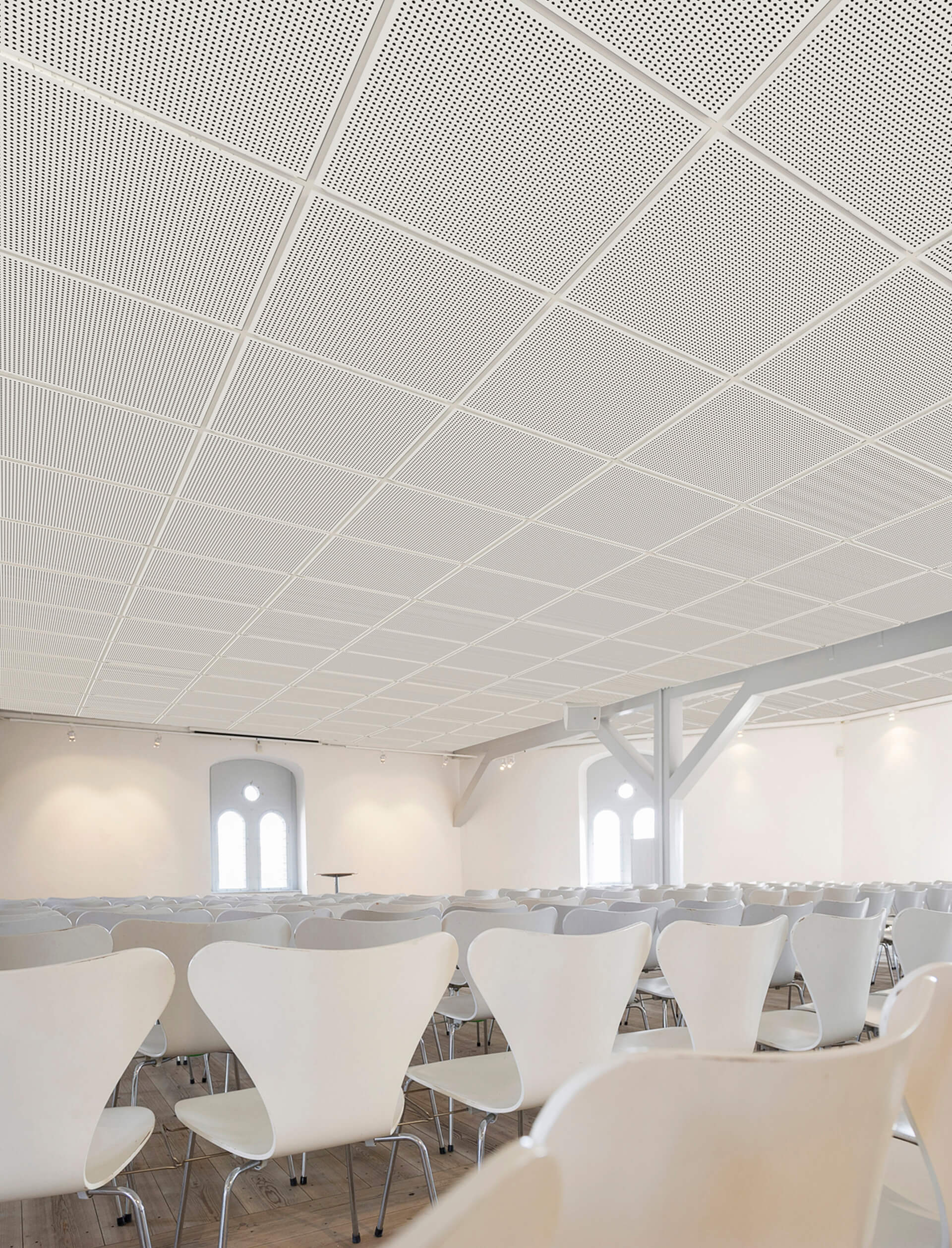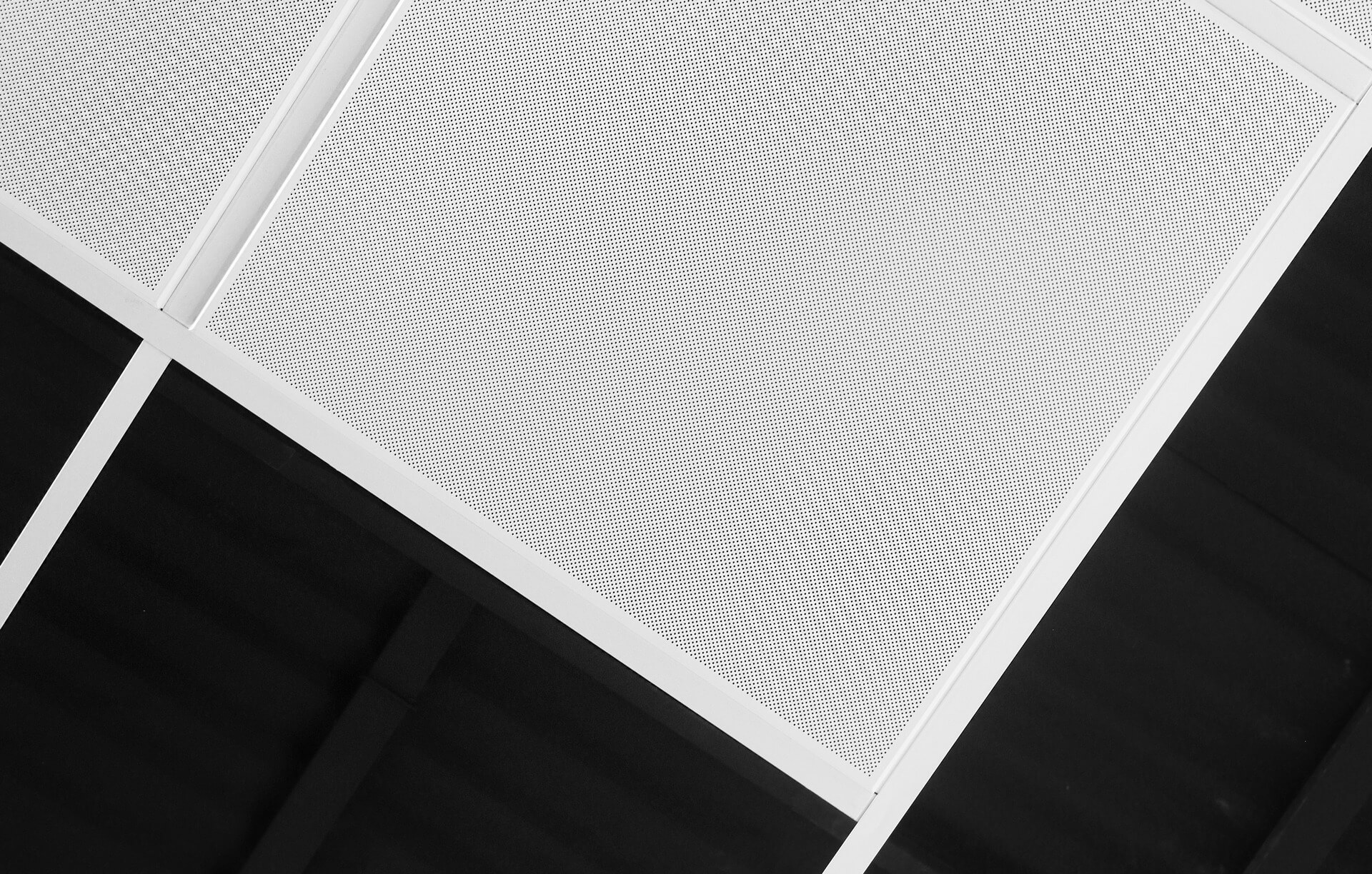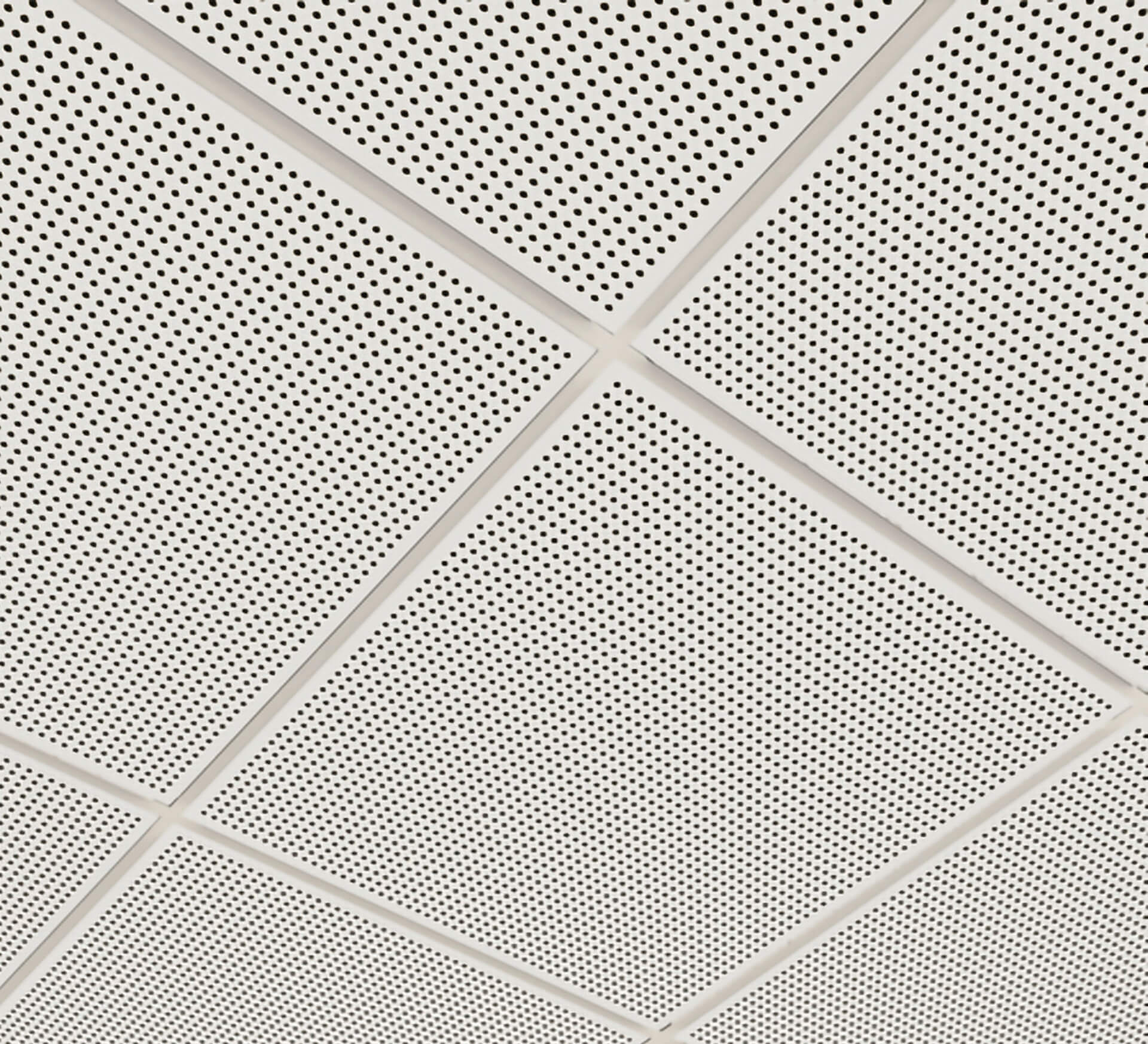 El S33 Lay In es un plafón metálico acústico que, mediante el diámetro de su perforación combinado con el velo acústico, puede alcanzar un coeficiente de reducción de ruido (NRC) de entre 0.55 a 0.75, brindando confort sonoro en espacios con alta ocupación.