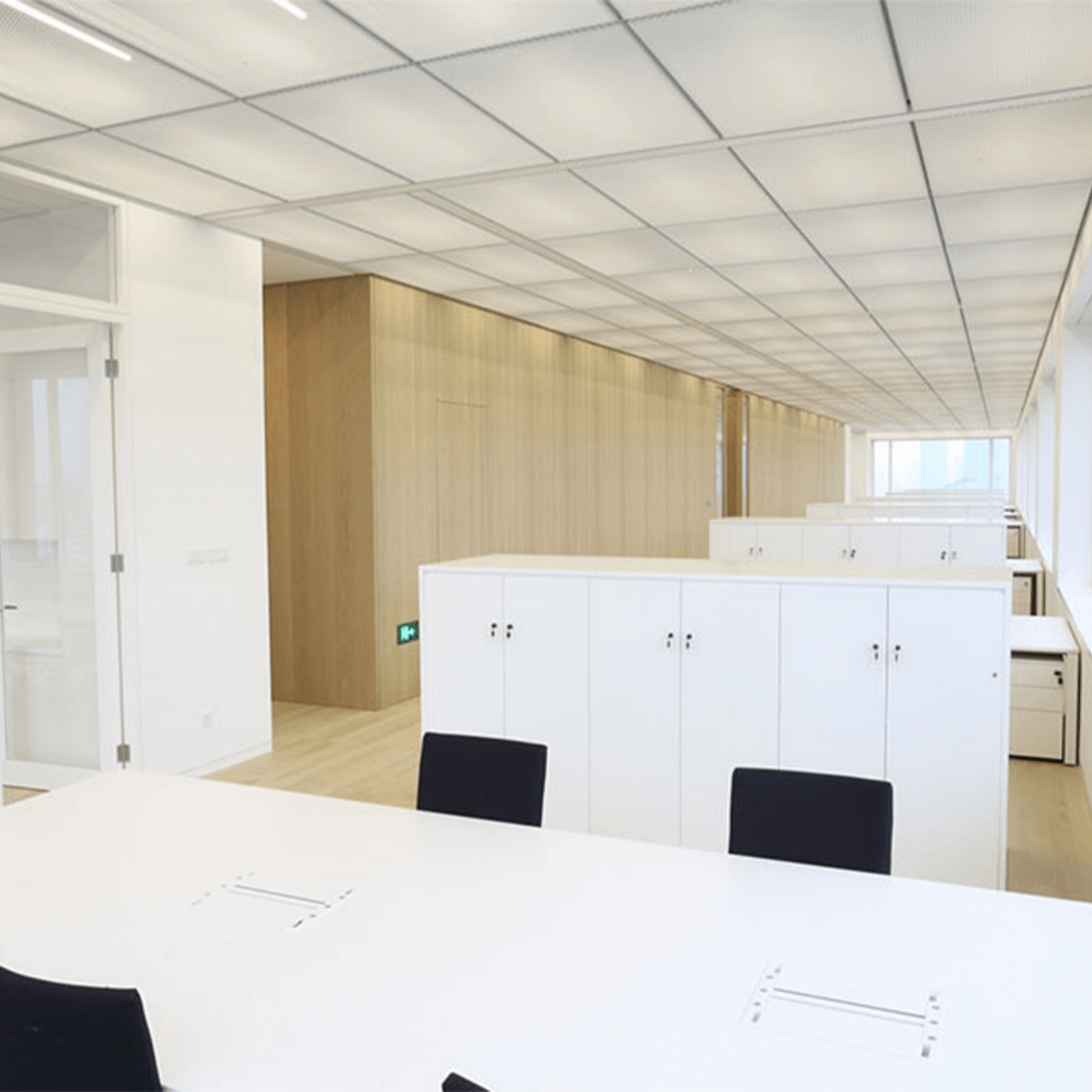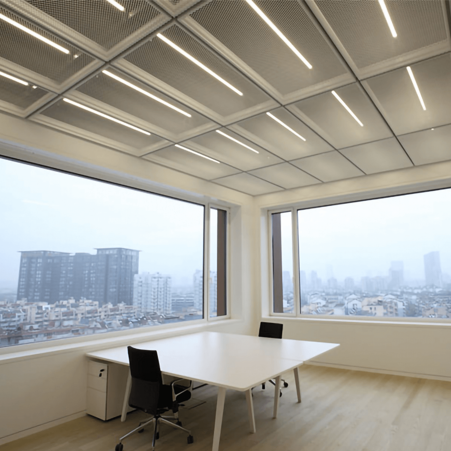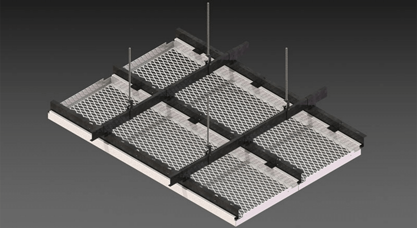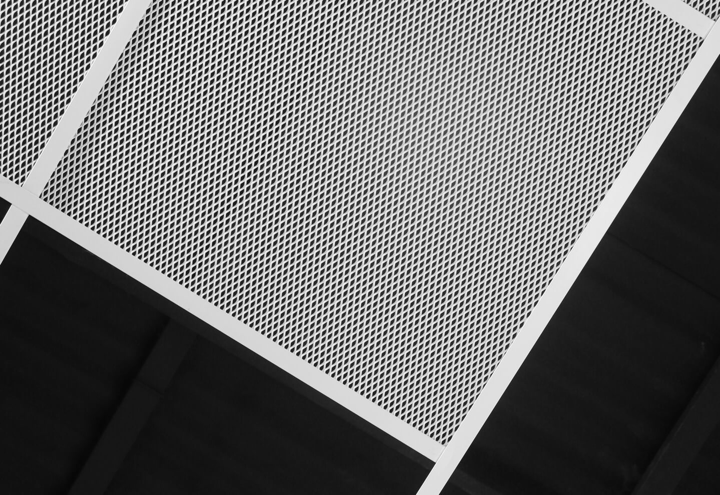 El S49M Mesh es un plafón metálico fabricado en lámina de acero galvanizado diseñado con una distintiva apariencia de malla en forma de diamante. Su estructura flexible permite instalarlo con suspensión 9/16” o 15/16”, ofreciendo mayor libertad estética y múltiples configuraciones según el proyecto.